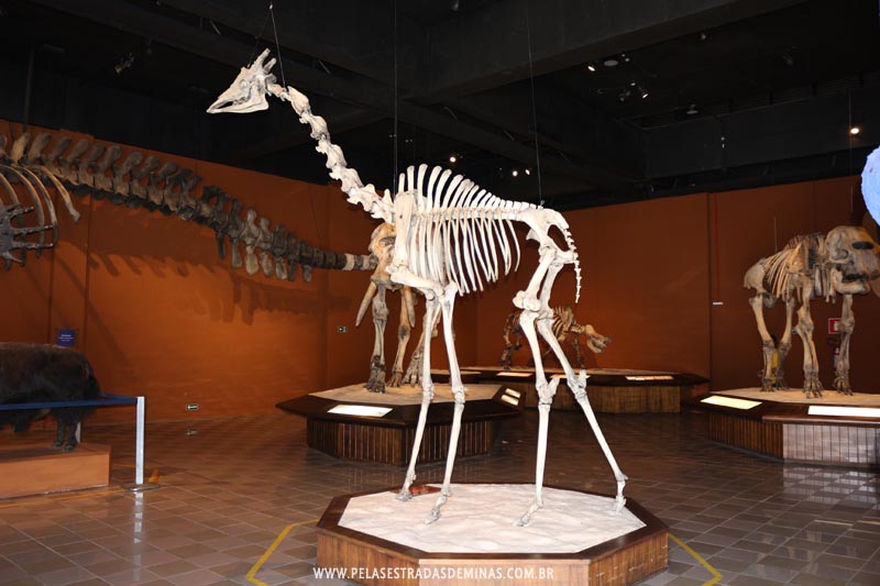 Um dos destaques da exposição é o fóssil completo da preguiça gigante, além fósseis como do mastodonte, toxodonte, tatu gigante, tigre-dentes-de-sabre, macaco Protopithecus, dentre outros.